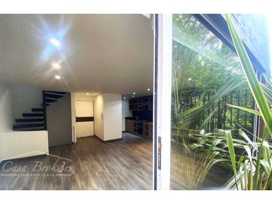 Vendemos o arrendanos hermoso apartamento con un diseño escalonado en ladrillo y paredes de cemento en colores ocres. Esta vivienda se encuentra en un segundo nivel del conjunto denominado Las Garzas y gracias a esta circunstancia, pueden disfrutar de un jardín y terraza de uso privado. Al ingresar encontramos una zona amplia de sala con chimenea y comedor con salida a un hermoso jardin . Cocina abierta. En el segundo piso divisamos la habitación principal iluminada con vestier y un gran baño. luego bajamos y encontramos una segunda habitación con baño privado , terraza y zona de lavanderia. El apartamento cuenta con un garaje y deposito. Excelente sector para disfrutar de la Naturaleza a pasos de la quebrada la vieja, el camino cuenta con miradores y corredores ambientales. Se encuentra a una cuadra del colegio Nueva Granada. LDLV